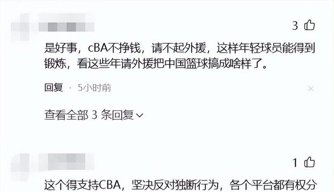 不少忠实球迷也站在CBA一边,反对咪咕长期垄断转播资源。