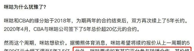有网友分析,咪咕与CBA合作多年,大概率不会彻底退出。
