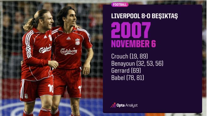 •利物浦 8 - 0 贝西克塔斯 —— 2007年11月6日